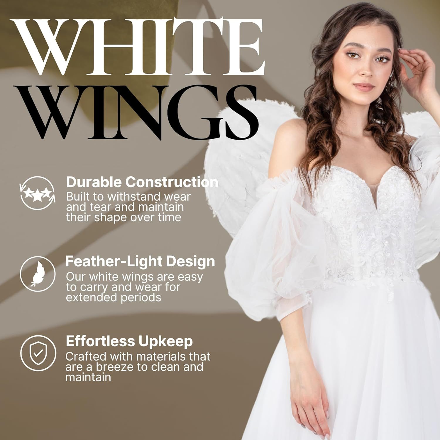 Perfectas para disfraces, sesiones de fotos, obras teatrales o eventos temáticos, estas alas aportan un toque de pureza, luz y elegancia que transforma cualquier atuendo en algo inolvidable.