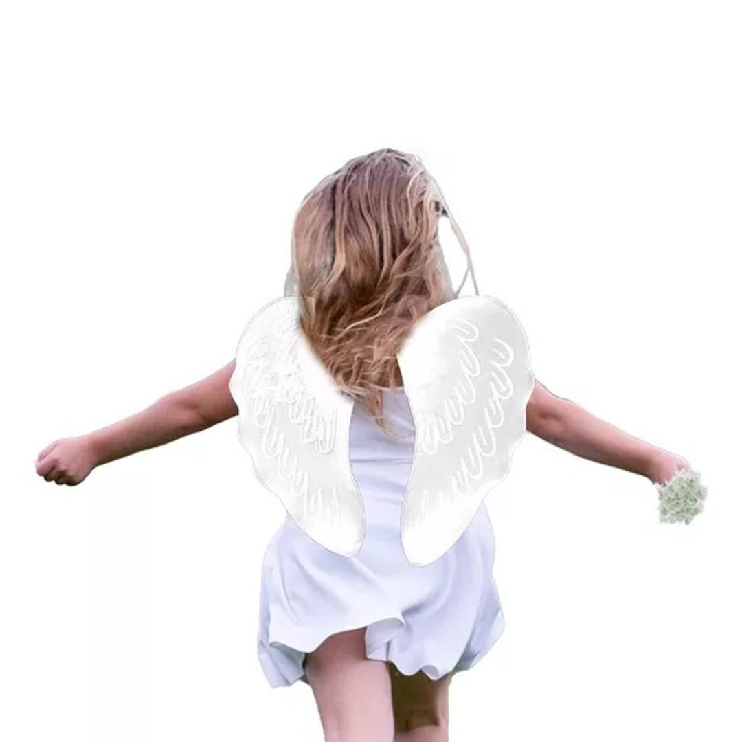 Las Alas de Ángel Blancas con Gibré son el complemento perfecto para disfraces de ángel, eventos especiales o sesiones de fotos, aportando un toque celestial y brillante.
