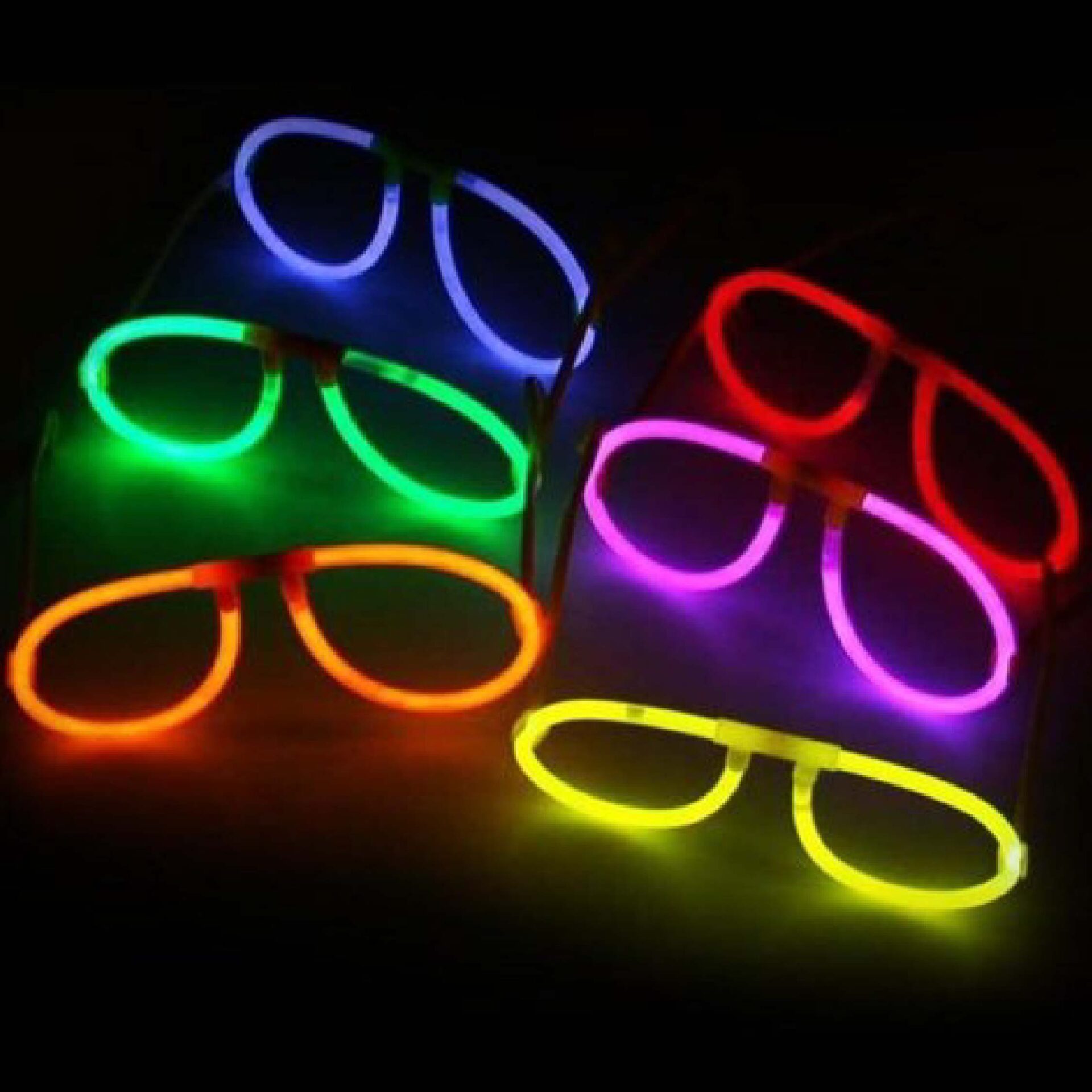 Los anteojos glow funcionan con un principio simple: química fluorescente. Dentro de los tubos hay una sustancia líquida que, al quebrarse el interior con un leve movimiento, inicia una reacción química que emite luz. ¡Y lo mejor es que no necesita pilas!