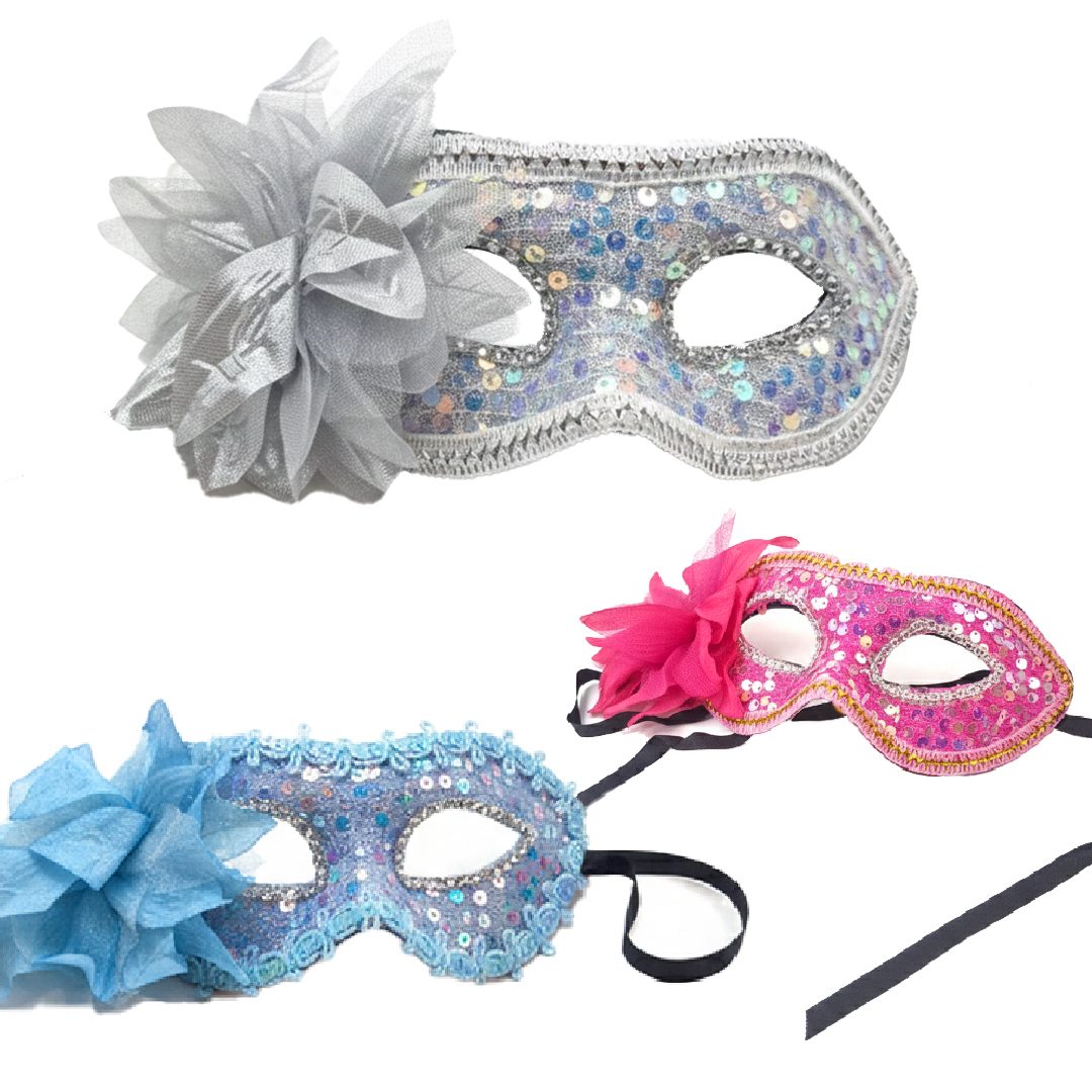 🎭 Antifaz Lentejuela con Flor – Color a Elección | Elegancia y Misterio para tus Eventos