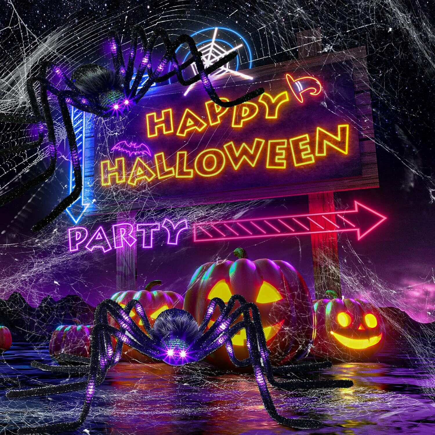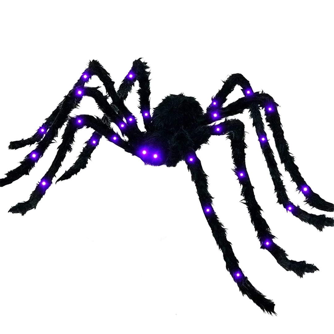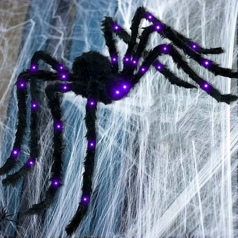 - Luces LED Incorporadas: La araña incluye luces LED que la hacen resplandecer en la oscuridad, ideal para crear ambientes terroríficos.