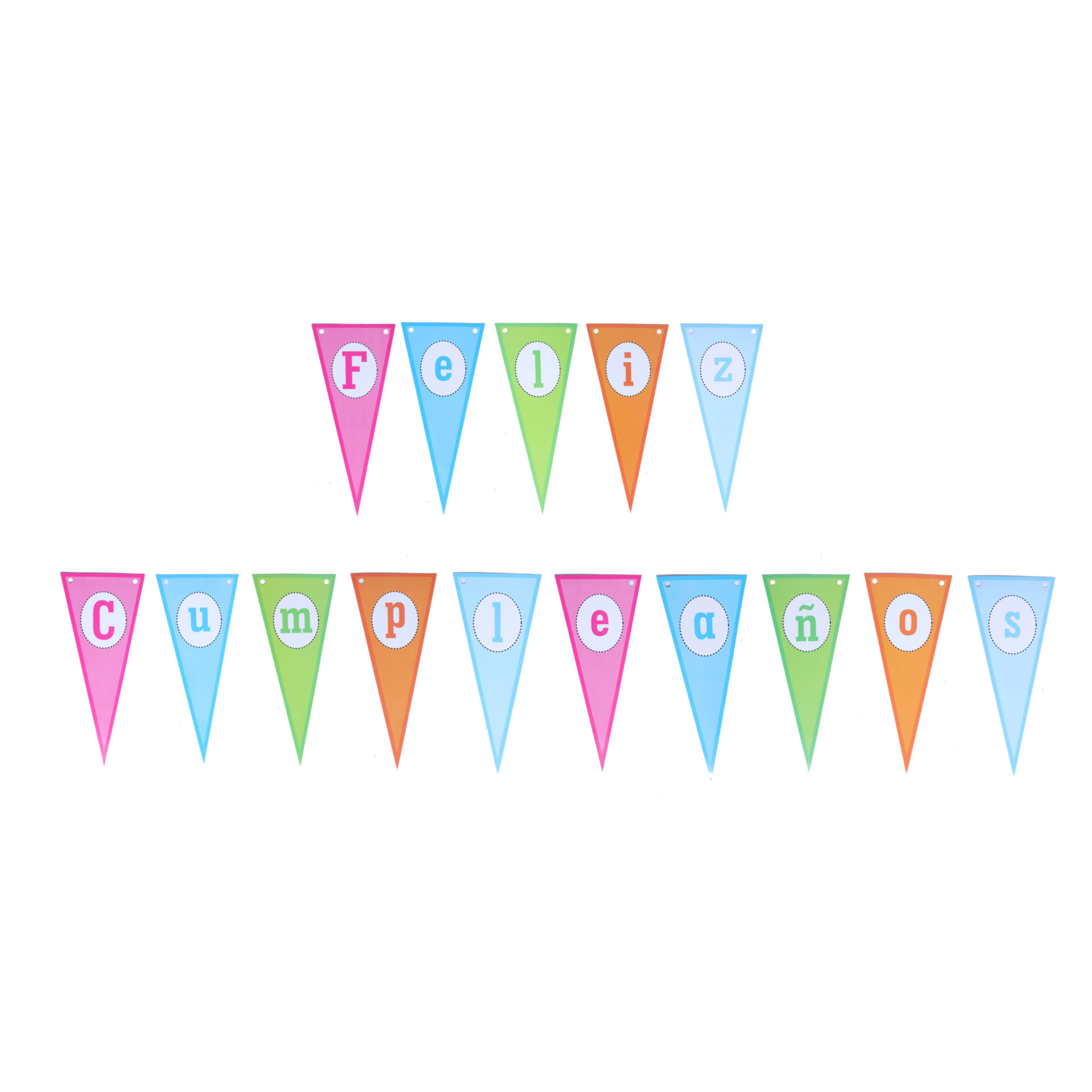 Es una guirnalda decorativa compuesta por banderitas de colores que, al unirse, forman la frase “Feliz Cumpleaños”. Generalmente está fabricado en cartulina, papel grueso, plástico o incluso tela, y viene listo para colgar con un hilo, cinta o cordón que une todas las letras o banderines.