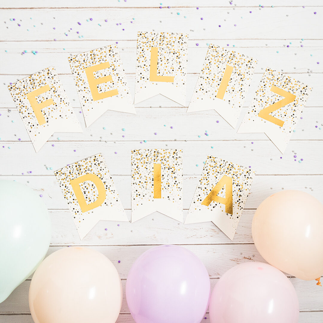 ¡Decora con estilo y alegría usando nuestro Banderín «Feliz Día»!
