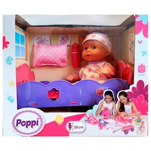 Bebé Poppi con Accesorios y Cuna – ¡Cuidar nunca fue tan tierno!