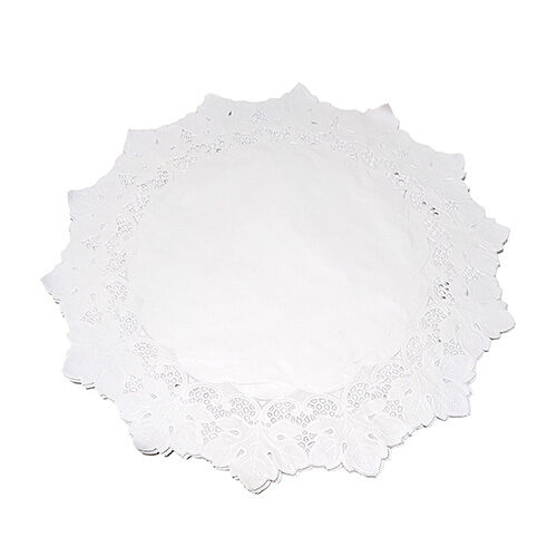 Es un disco de papel decorativo en color blanco, con bordes calados que imitan encaje. Su diámetro de 38 cm la hace ideal para tortas grandes, bandejas familiares o presentaciones elegantes en eventos. Además de embellecer, ayuda a mantener la higiene al separar los alimentos del soporte.