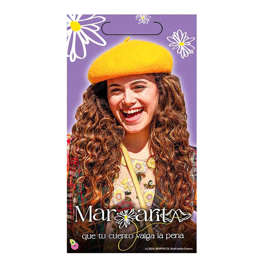 - Diseño alusivo a la serie infantil Margarita, con colores vibrantes y personajes entrañables.