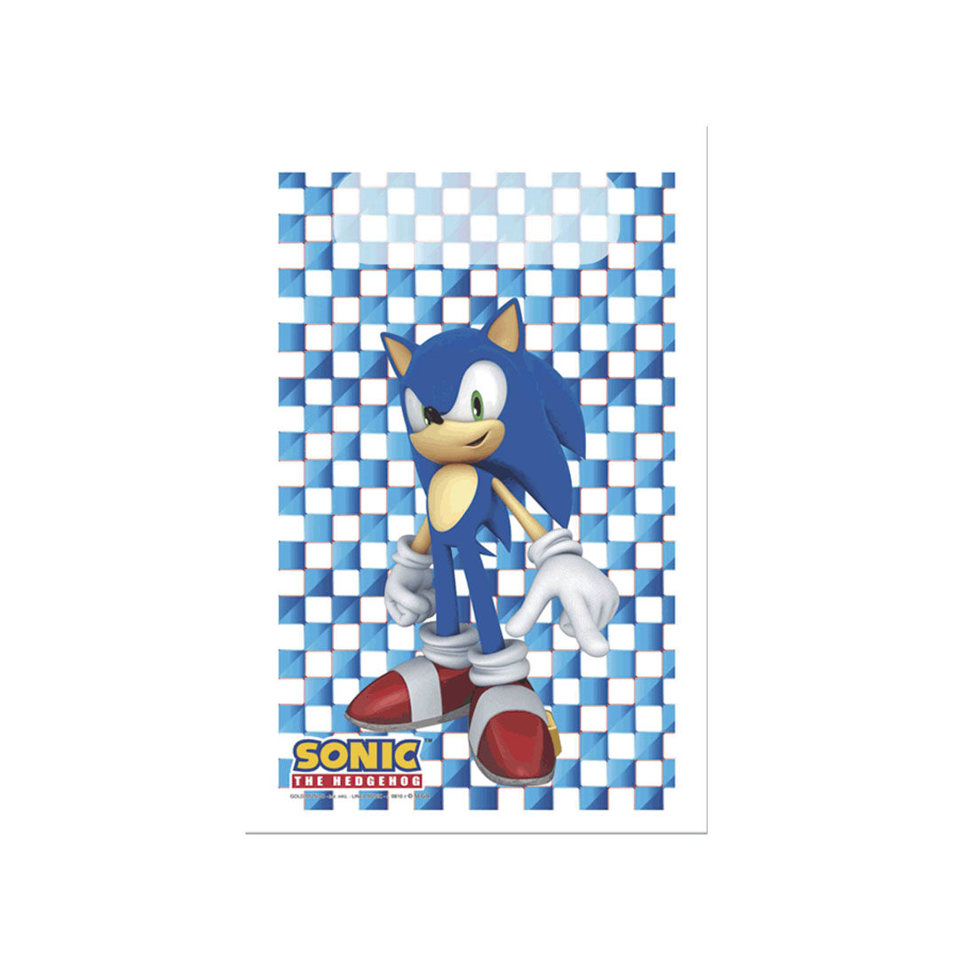 Son bolsitas descartables de plástico, con manija troquelada, decoradas con imágenes vibrantes de Sonic el Erizo. Vienen en un pack de 10 unidades, ideales para repartir entre los invitados del cumpleaños o evento.