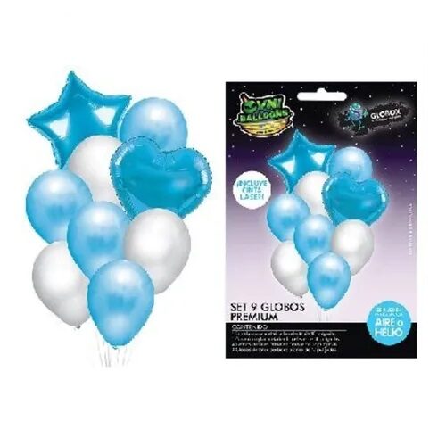 Set de globos de celestes y blancos ideal para decorar cumpleaños, aniversarios, fiestas temáticas y más!