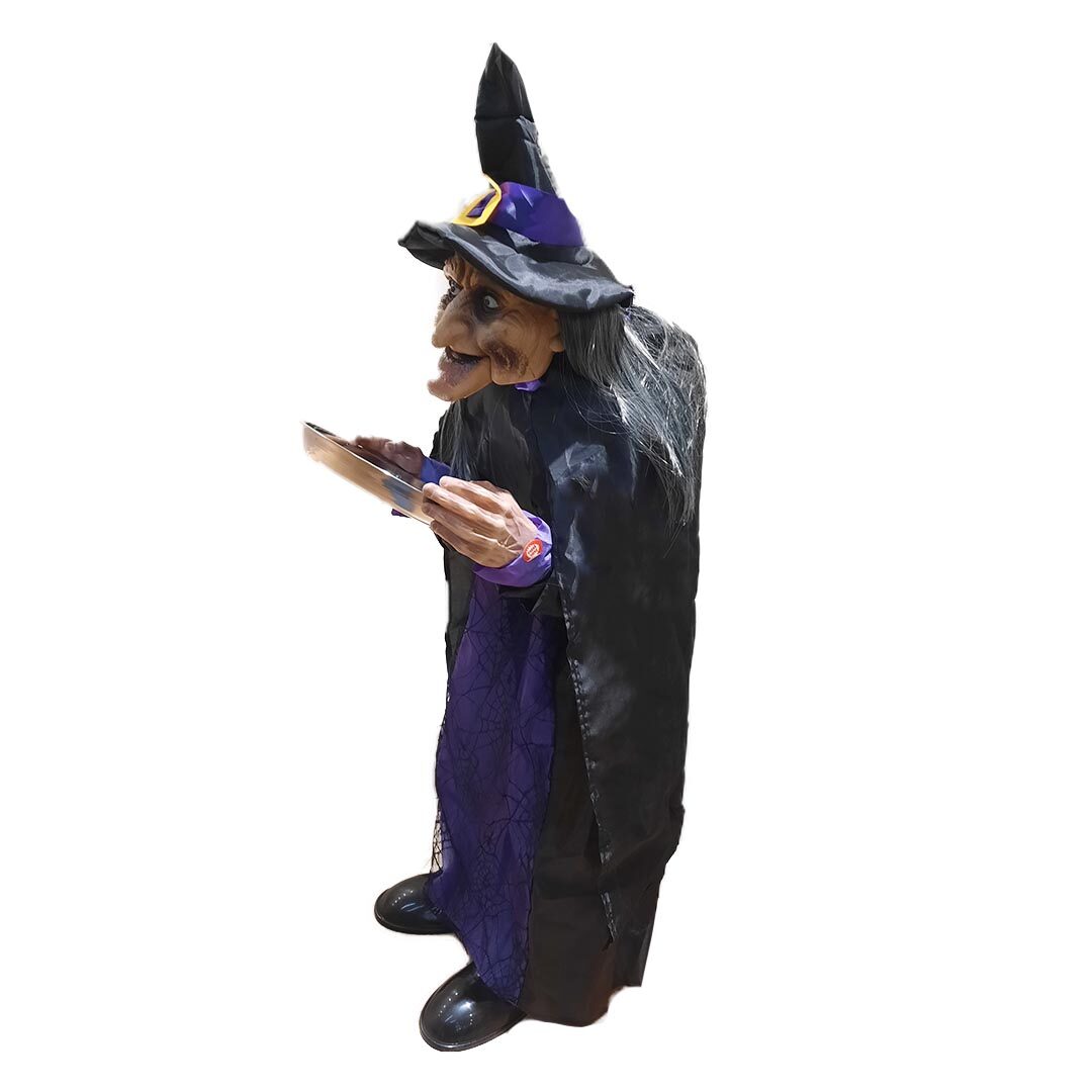 Bruja de 1 m con LED, sonido y bandeja golosinera