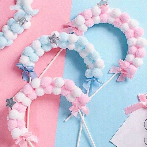 Cada topper está compuesto por suaves y esponjosos pompones que podés elegir en el color que mejor combine con tu decoración. ¡Una opción versátil que se adapta a tu estilo y temática!