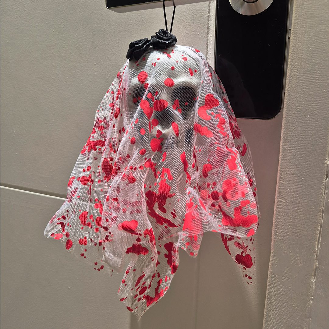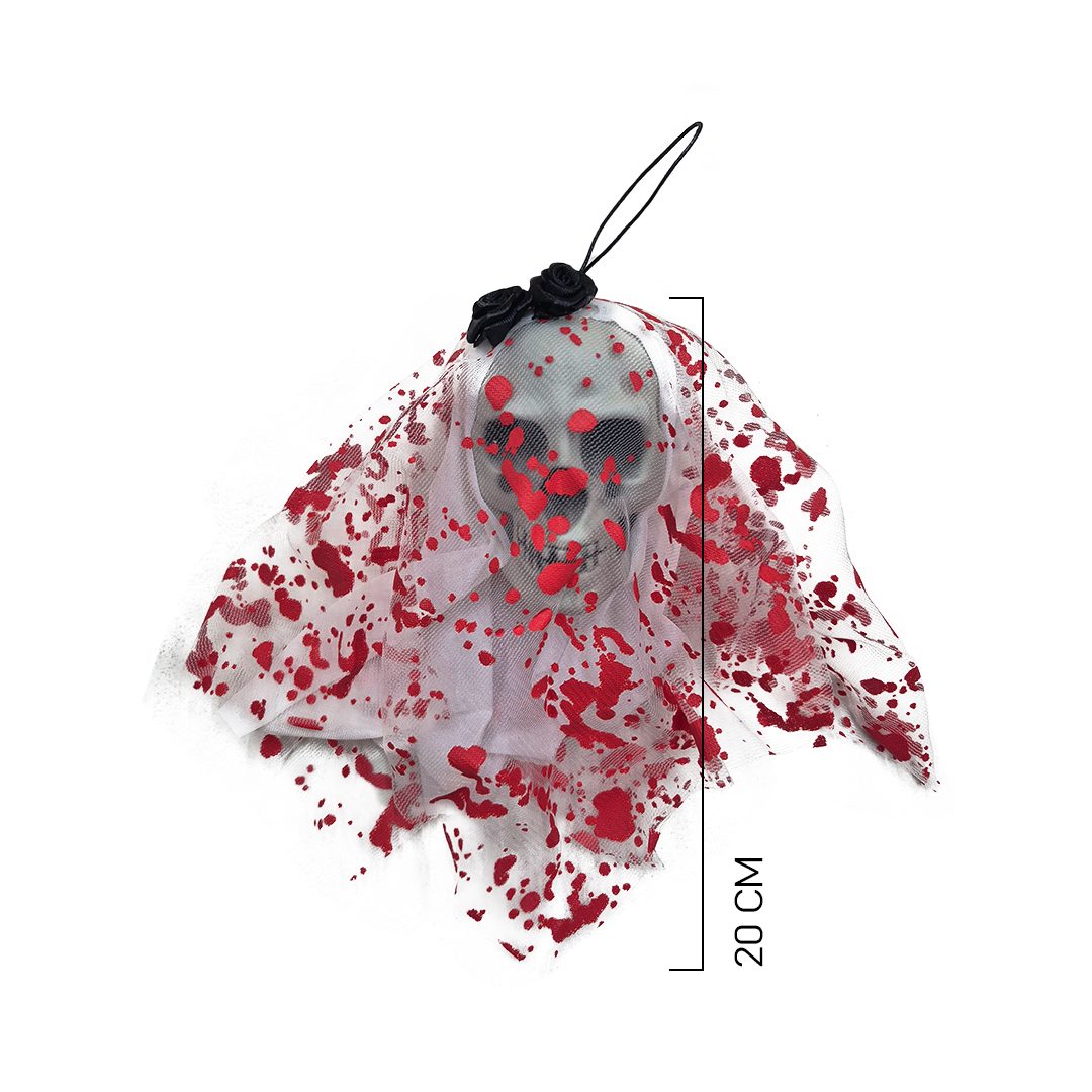 La Calavera con Velo Sangriento es el accesorio decorativo que no puede faltar en tu fiesta de Halloween. Su mezcla de elegancia macabra y realismo espeluznante la convierte en el centro de todas las miradas.