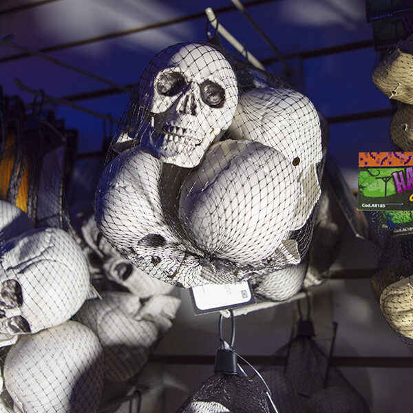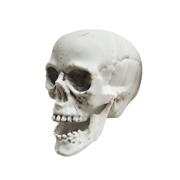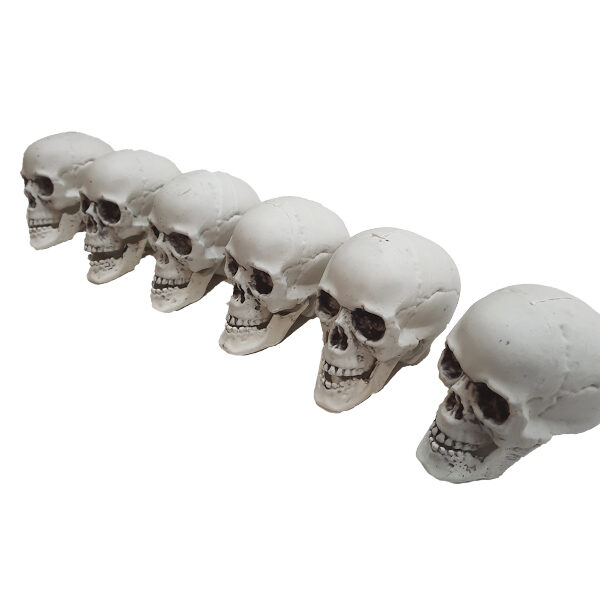 Calaveras plásticas de 10 cm de alto aproximadamente.