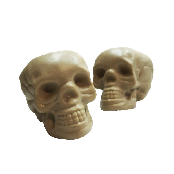 Se trata de un set de cuatro mini calaveras decorativas, con una estética realista pero simpática, perfectas para ambientar fiestas, armar centros de mesa o darle un toque especial a tu espacio.