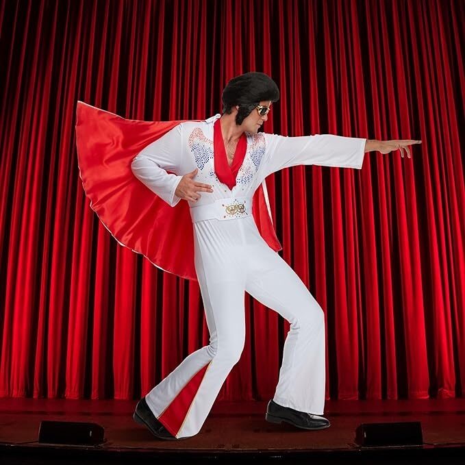 - Diseño Inspirado en Elvis: La Capa de Elvis Reversible captura el espíritu y el estilo de Elvis Presley, con detalles cuidadosamente elaborados y un toque de elegancia retro.