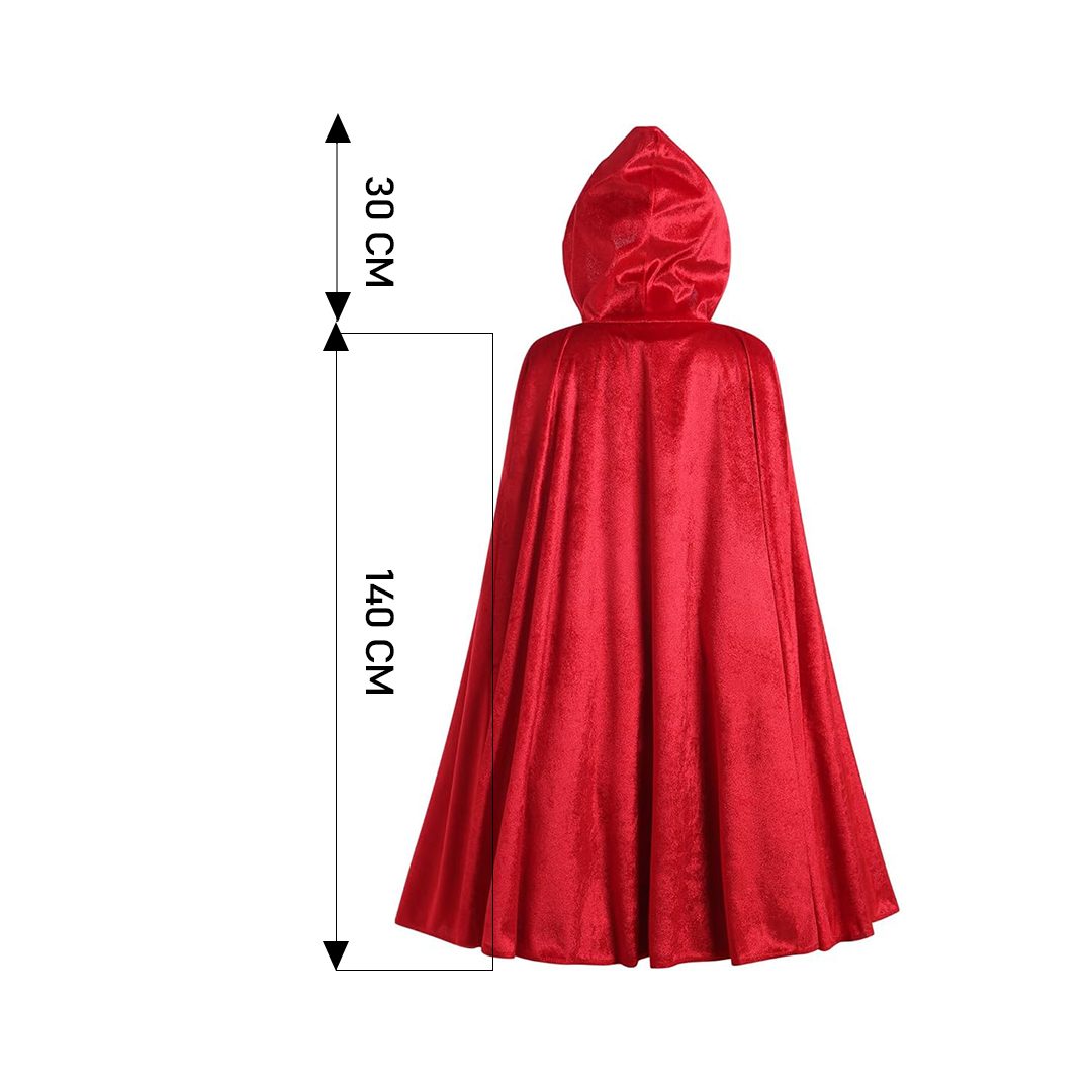 Perfecta para representar personajes como Caperucita Roja, hechicera, vampira o reina del bosque, esta capa se adapta a múltiples estilos y ocasiones.