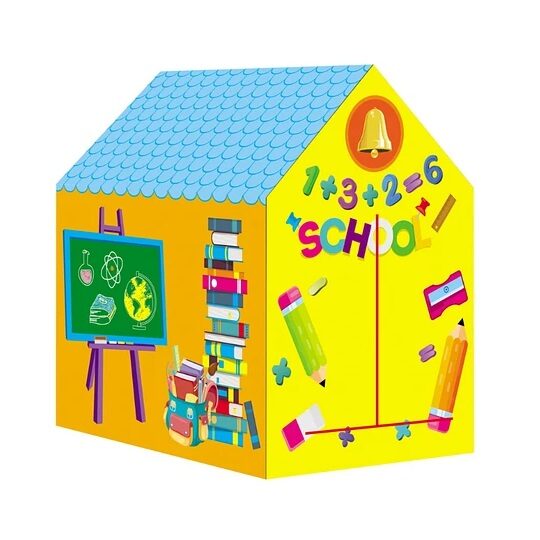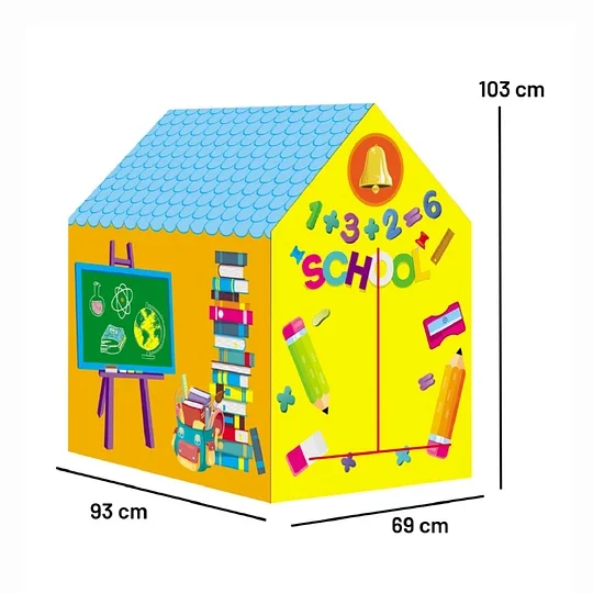 - Diseño Escolar Encantador: La carpa presenta un diseño encantador que simula una pequeña casa escolar, creando un ambiente educativo y acogedor.