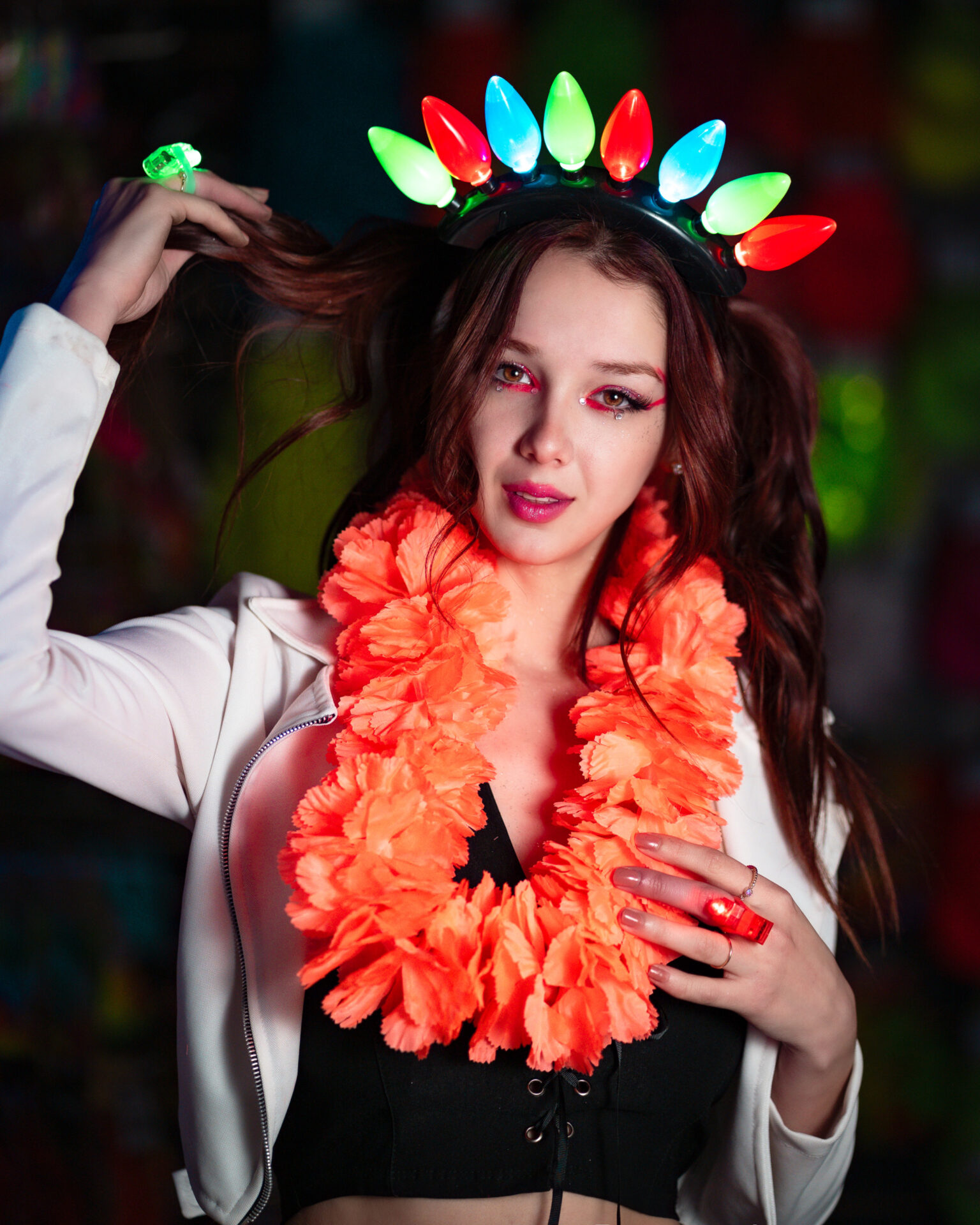 Este collar de flores presenta pétalos de flores de color neón, que le dan un llamativo toque de color a tu look.