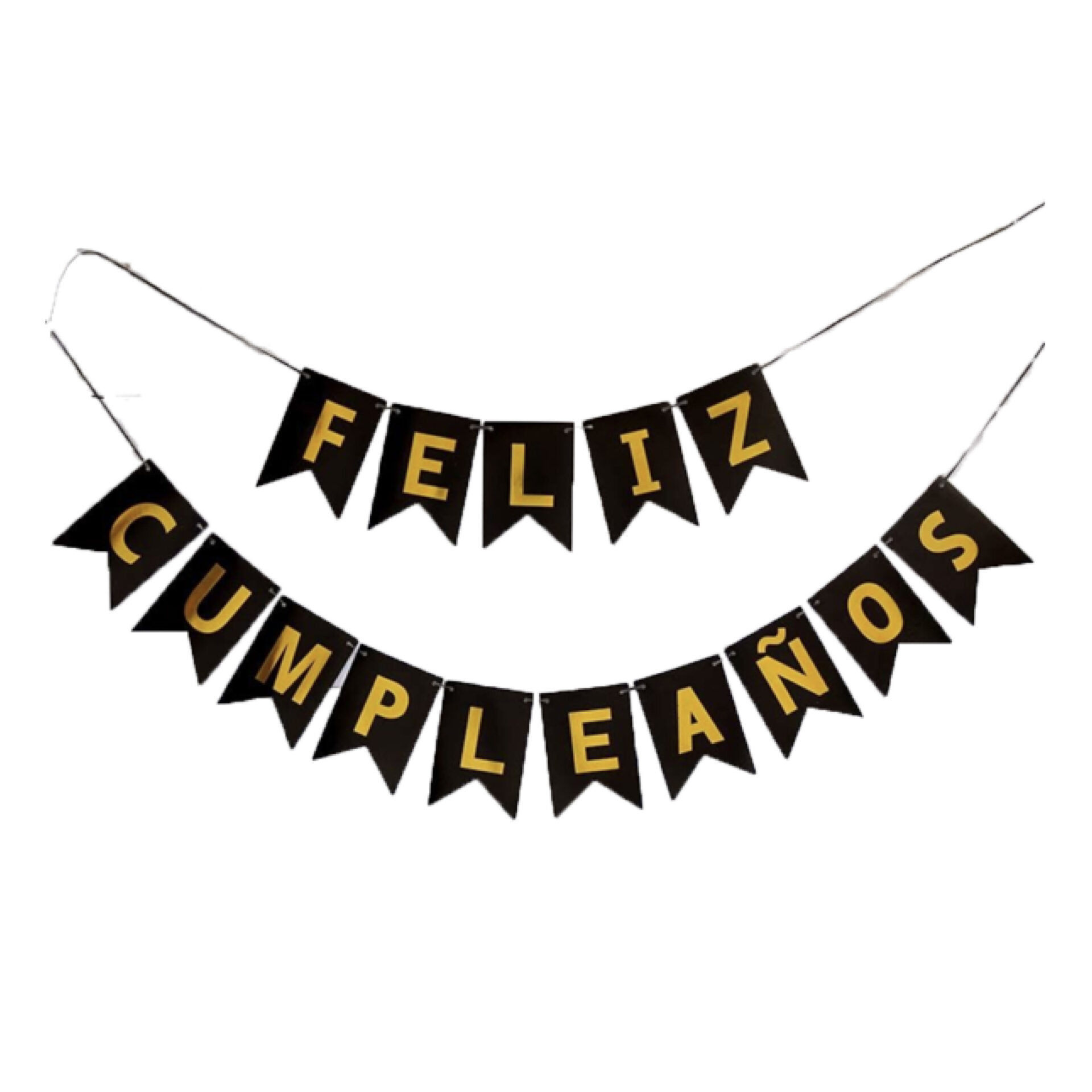 1 banderín «feliz cumpleaños» Color negro o violeta (color sujeto a disponibilidad).
