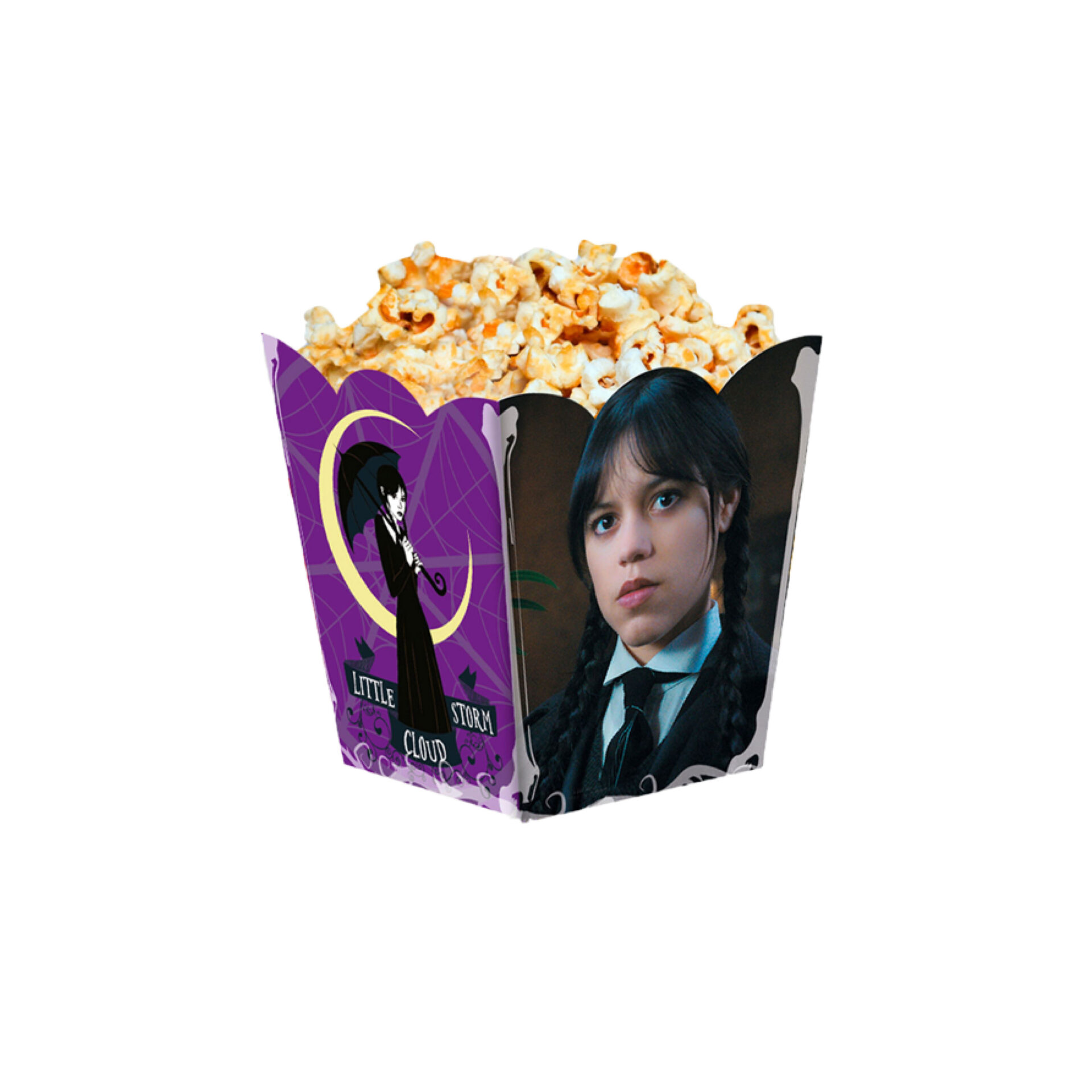 6 cajitas pochocleras con diseño de Merlina Addams.