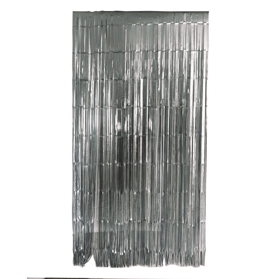 - 1 cortina metalizada plateada de 1m. de ancho x 2 m. de largo.