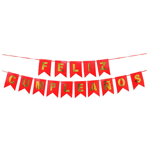 - 1 banderín «feliz cumpleaños» rojo con letras doradas.