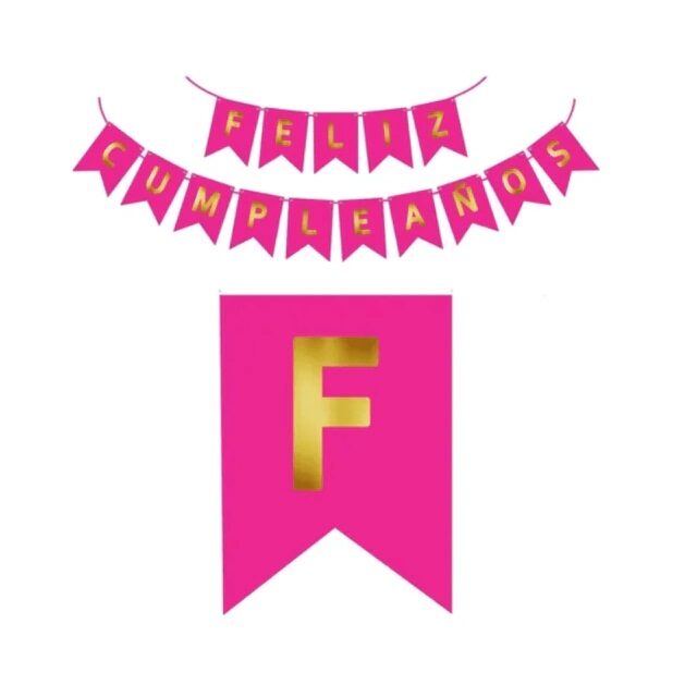 - 1 Banderín «FELIZ CUMPLEAÑOS» fucsia.