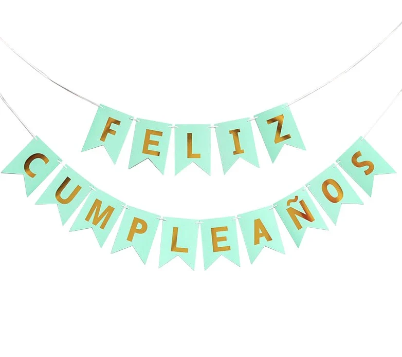 - 1 banderín «feliz cumpleaños» verde con letras doradas.