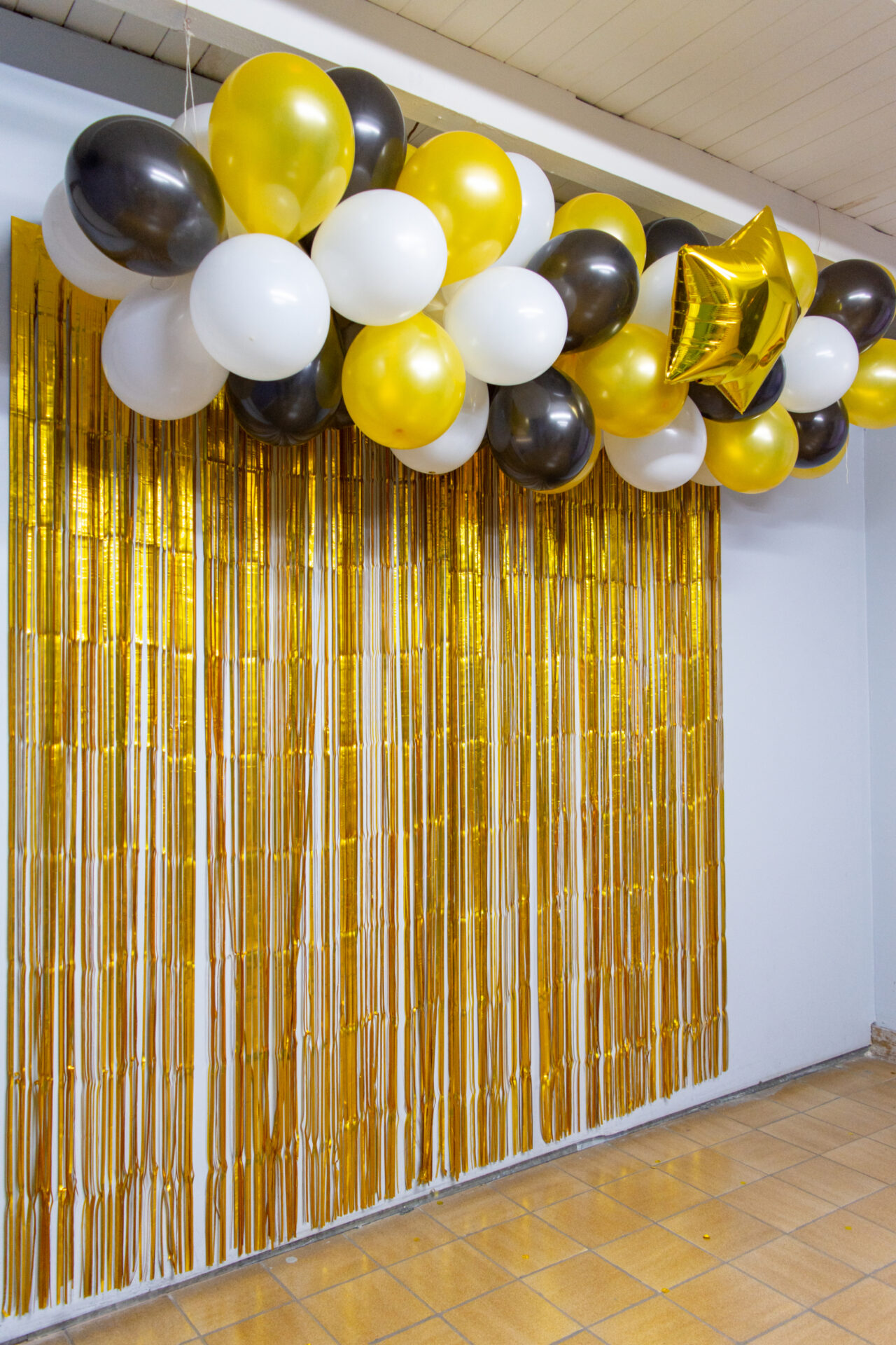 - 2 cortinas metalizadas doradas de 2 m. de largo x1 m de ancho c/u.