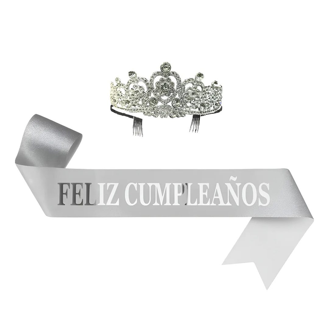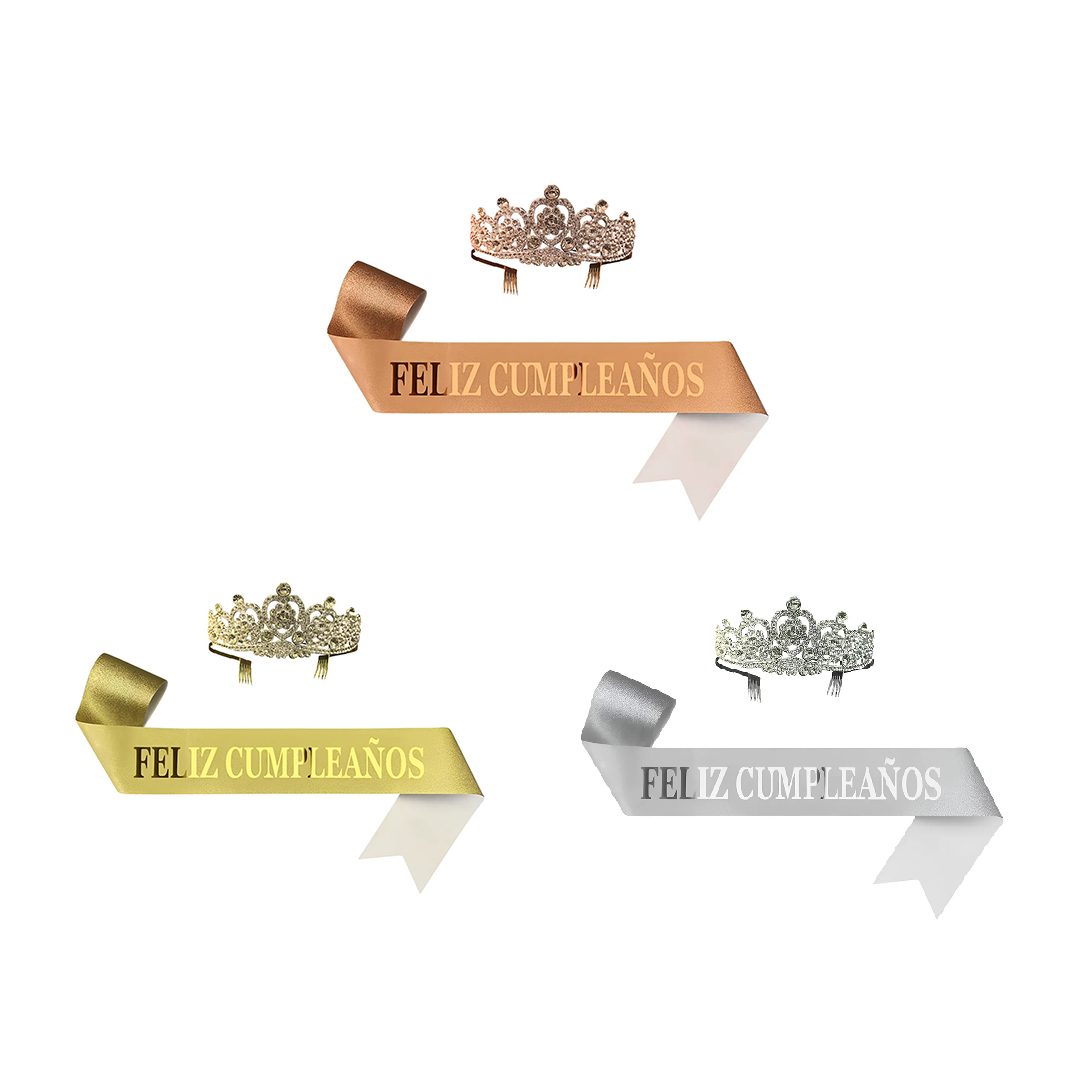 Corona y Banda «Feliz Cumpleaños» – Elegí tu color y brillá en tu día especial