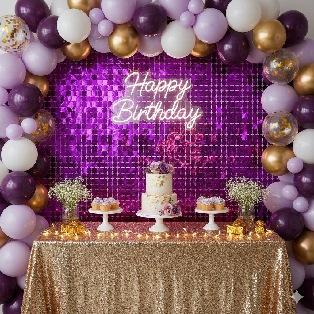 La Cortina Metalizada a Cuadros Fucsia de 1 x 2 metros es perfecta para crear un fondo impactante, moderno y lleno de energía. Su diseño a cuadros metalizados en color fucsia aporta brillo, color y un estilo llamativo que realza cualquier decoración festiva.