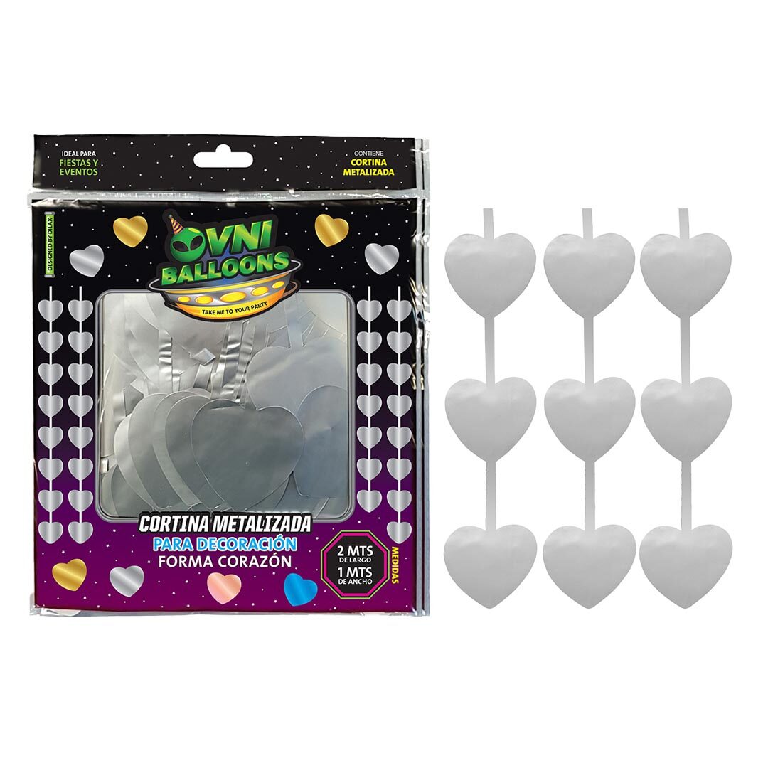 Cortina Metalizada Corazones Cromo Plata: Decora con Estilo y Encanto
