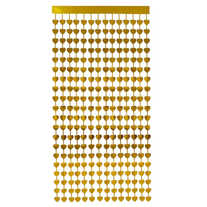 Cortina Metalizada Corazones Dorados para Cotillón: Decora con Estilo y Encanto