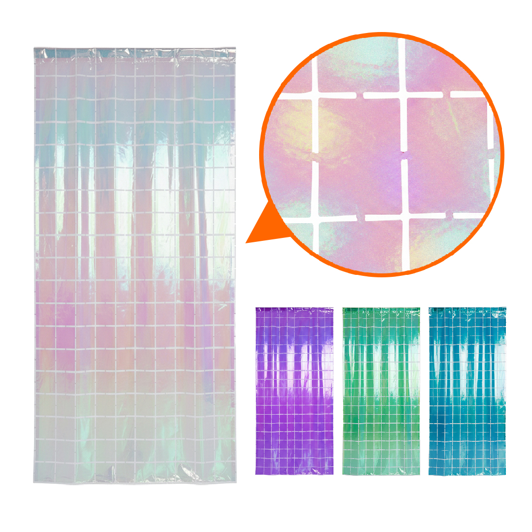 La CORTINA SHIMMER IRIDISCENTES/COLOR A ELECCIÓN es un fondo decorativo diseñado para transformar cualquier espacio con un efecto visual único y moderno. Combina el acabado shimmer con un efecto iridiscente que genera cambios sutiles de color según la luz y el ángulo desde el que se observe.