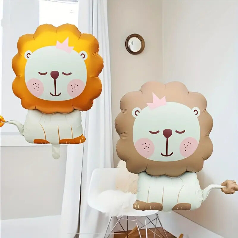 Es un globo decorativo con forma de leoncito bebé, en colores pastel como amarillo suave, durazno, celeste o beige, ideal para fiestas con estética delicada y amigable. El diseño presenta una carita tierna, melena suave y un estilo redondeado y simpático que lo hace irresistible.