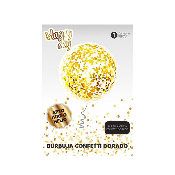 El globo burbuja con confetti dorado transforma cualquier evento en uno brillante y encantador.