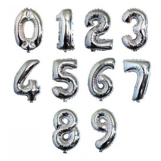Globo de Número Metalizado Plateado 40 cm