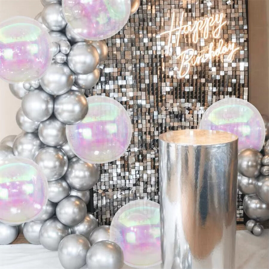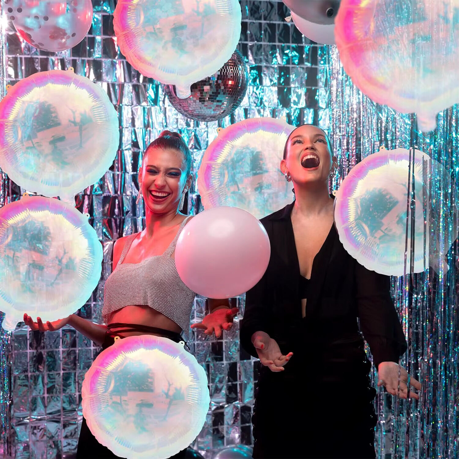 El Globo Esfera Iridiscente 55 cm aporta un efecto visual único y vibrante que hará de tus eventos algo inolvidable. ✨