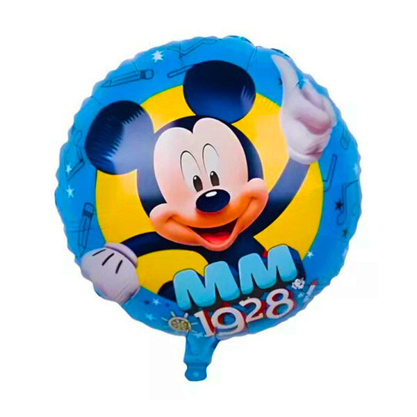 El globo presenta la imagen icónica de Mickey Mouse, el personaje más querido del universo Disney, con una sonrisa encantadora y colores vivos que captan la atención al instante.