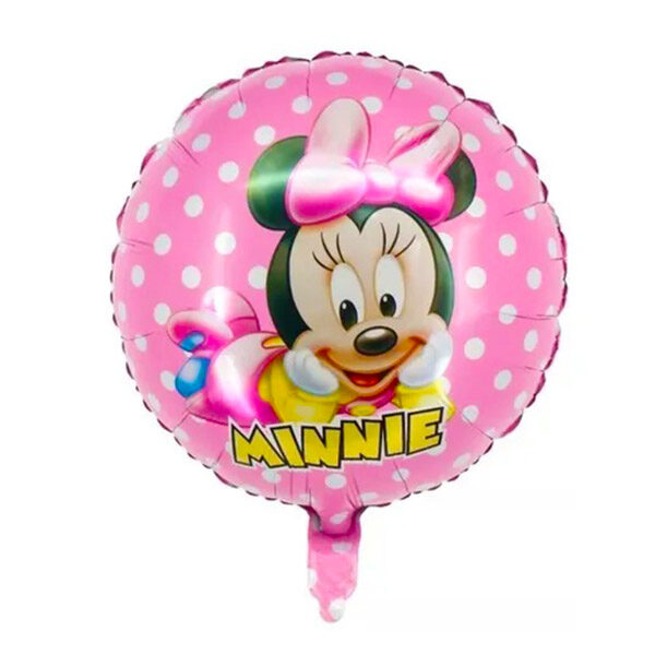 Este globo muestra a Minnie en su versión más dulce, ideal para nenas pequeñas. Con un fondo en tonos rosados y detalles metalizados que reflejan la luz, aporta vida y color a cualquier celebración. ¿Lo mejor? Su brillo se mantiene durante días, lo que lo convierte en un recuerdo perfecto incluso después del evento.