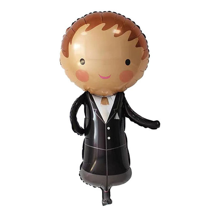 Este globo gigante en forma de novio con traje y corbata le dará un toque divertido y original a la celebración. Con un tamaño de 86 cm de alto, llamará la atención de todos y creará un ambiente festivo y alegre.