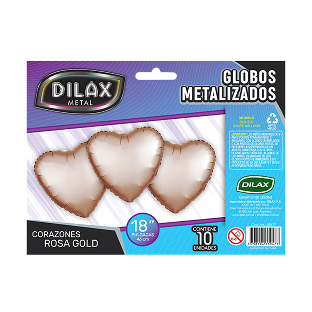 Globos Metalizados Corazones Rosa Gold 46 cm x 10