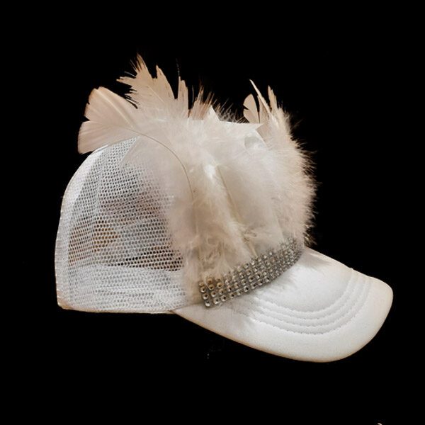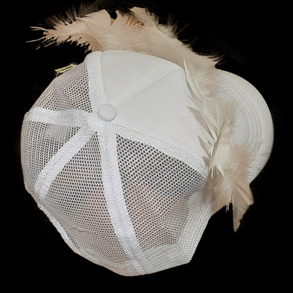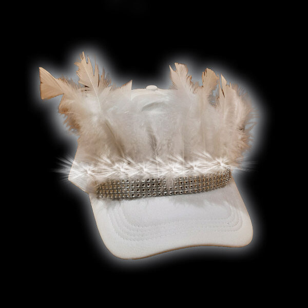 Ilumina tu Fiesta con Estilo: GORRA TRUCKER LED BLANCA CON PLUMAS