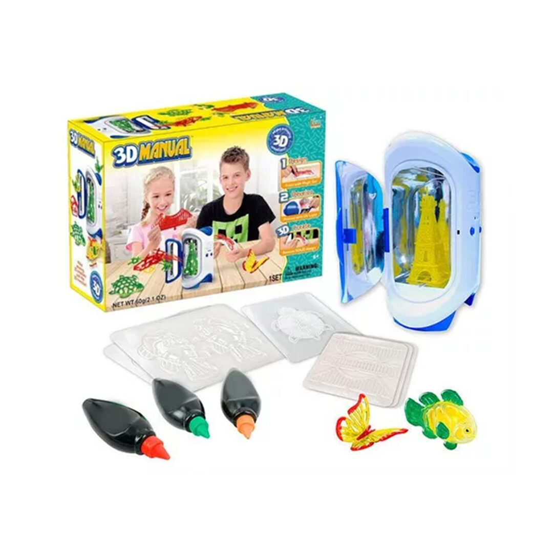 El kit incluye horno 3D a pilas, stencils 3D, plantillas, tubos de gel especial en cuatro colores e instrucciones paso a paso.