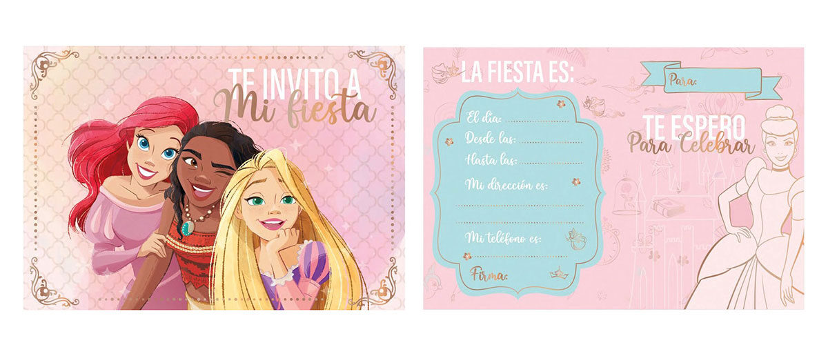 - Diseño Encantador: Tarjetas de invitación decoradas con las princesas de Disney más icónicas.