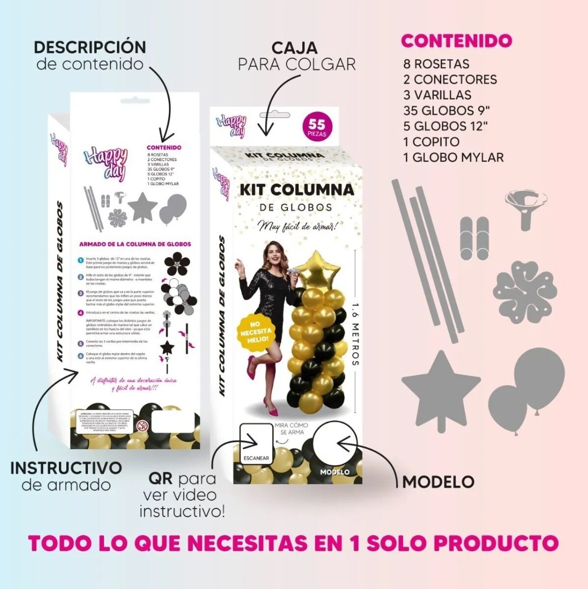 La columna de globos puede medir metro y medio aproximadamente y queda divina para sacarse fotos y decorar tus espacios.