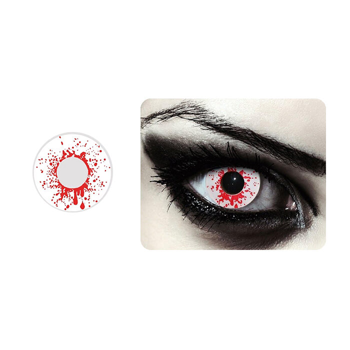 Dale un toque único y llamativo a tu estilo con nuestros Lentes de Contacto Fantasía Blancos con Sangre. Perfecto para crear looks impactantes e inolvidables.