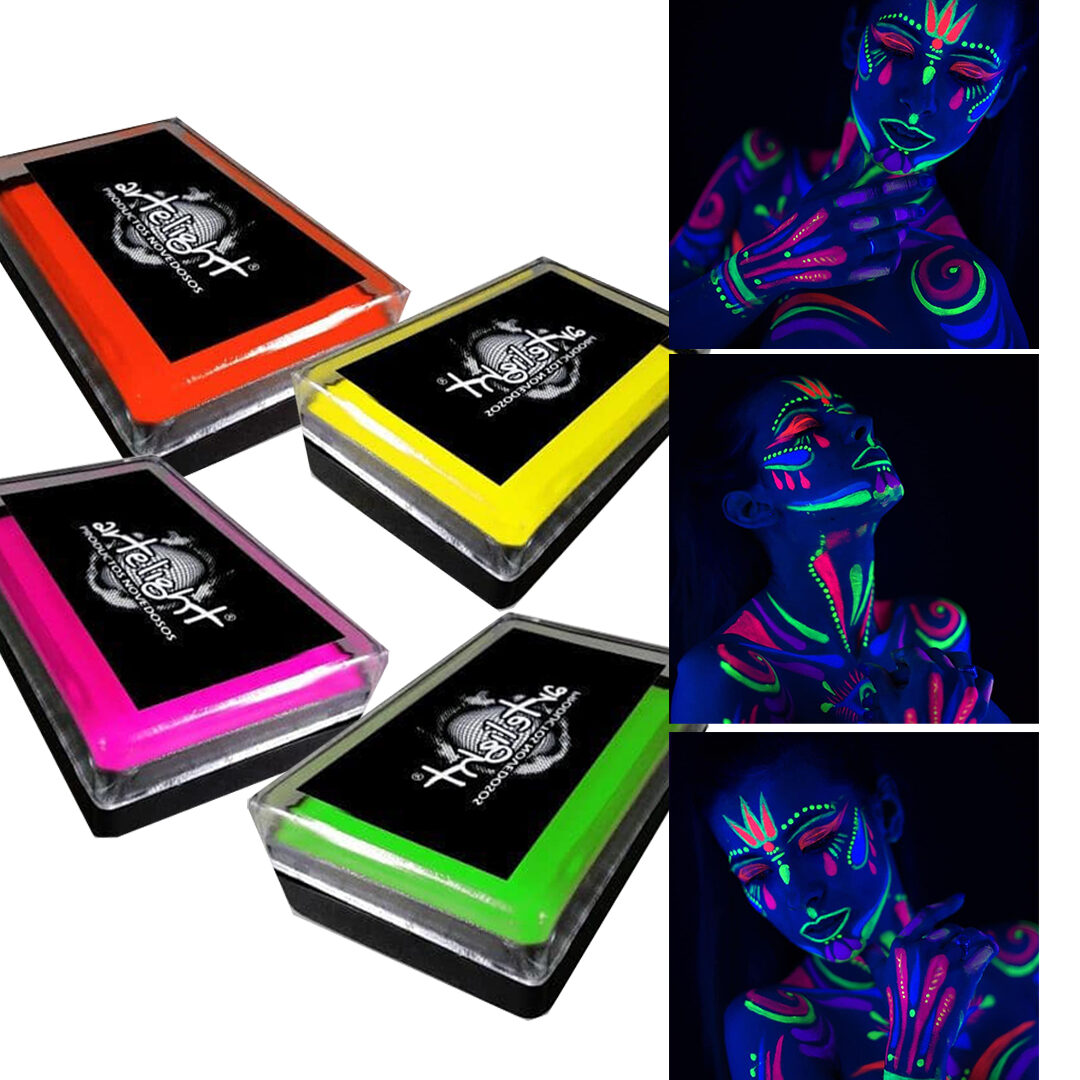 ¡Maquillaje Fluo UV 25 gr para brillar toda la noche!
