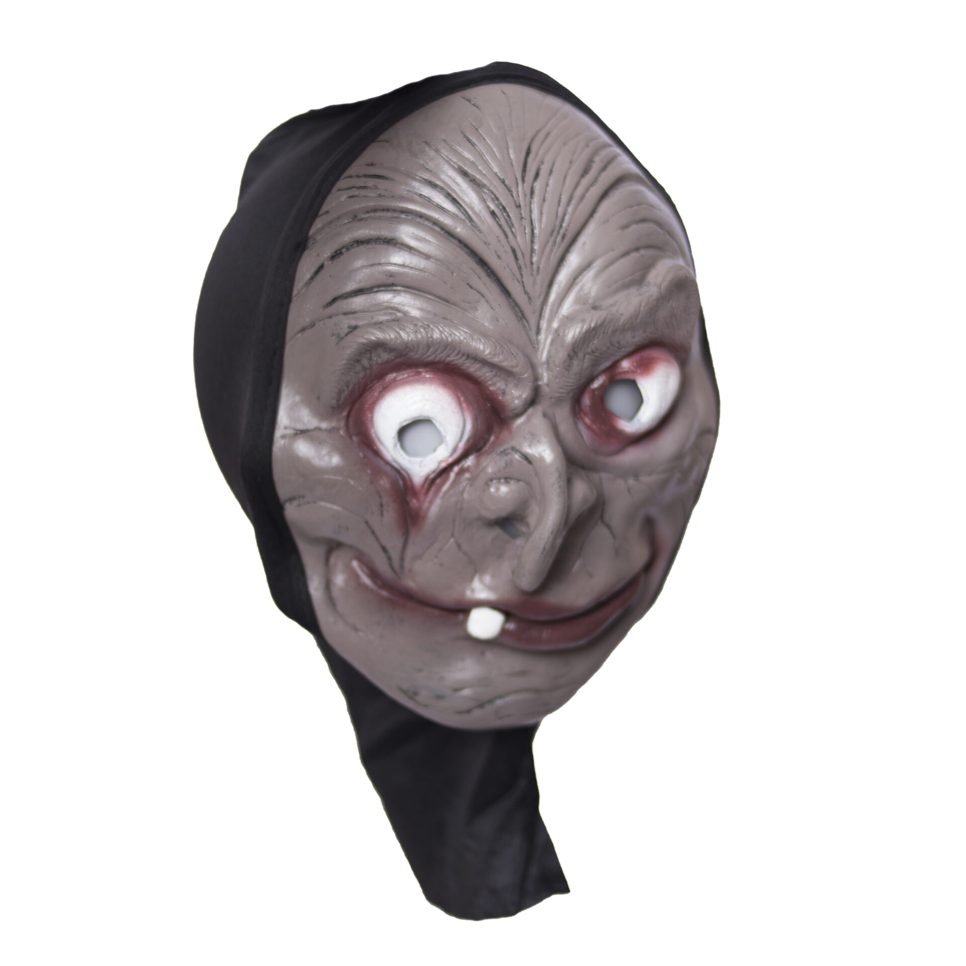 Máscara que cubre toda la cabeza de goma con diseño frontal de muerto y tela negra en parte trasera.