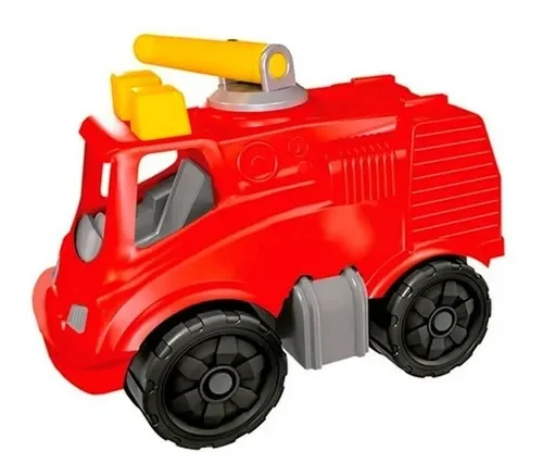 Es un juguete de plástico resistente, de tamaño compacto, diseñado para niños pequeños. Representa un camión de bomberos clásico con escalera, ruedas grandes y detalles visuales que lo hacen llamativo y fácil de reconocer. Forma parte de la línea de vehículos de emergencia de Duravit, una marca argentina reconocida por sus juguetes duraderos y seguros.