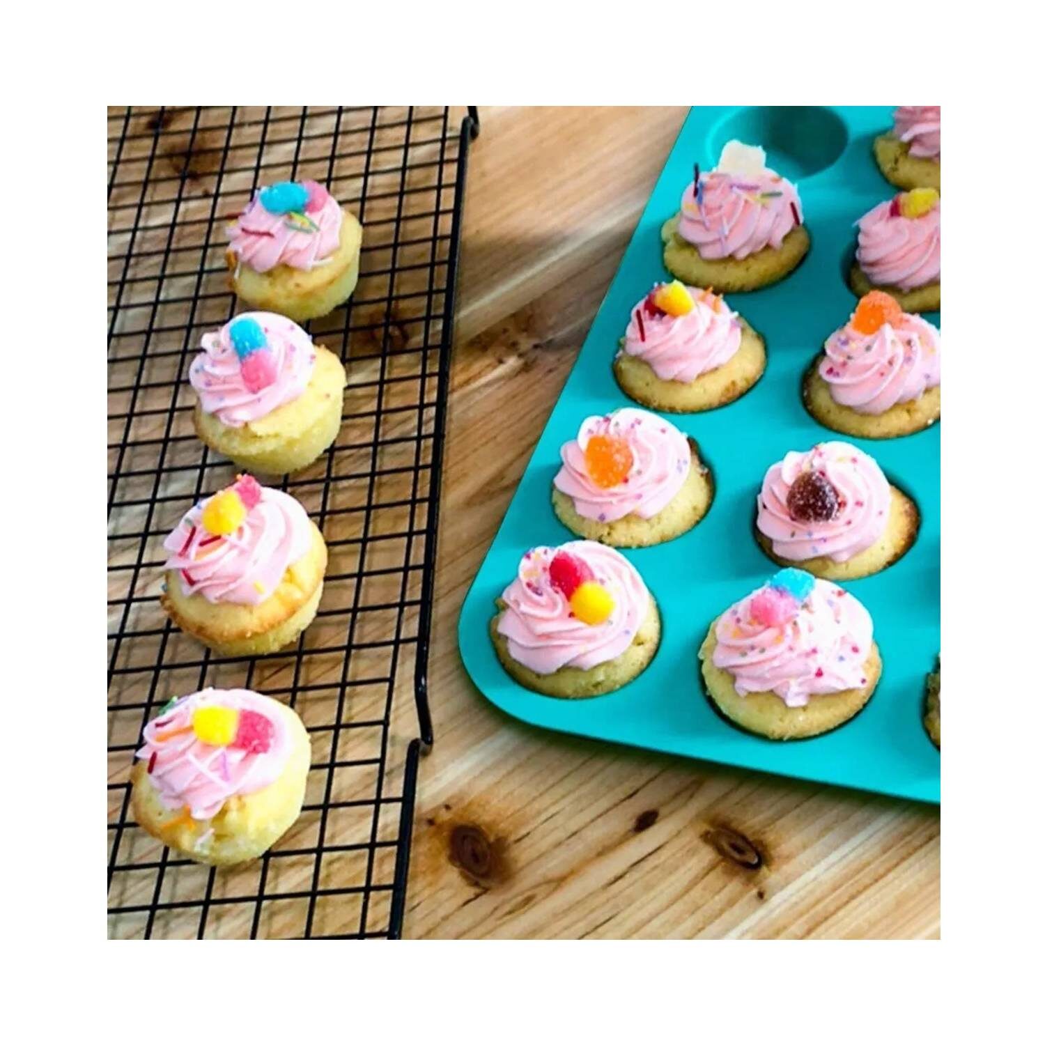 Fabricado con silicona de primera calidad, este molde es duradero, resistente al calor y garantiza una fácil liberación de cupcakes.